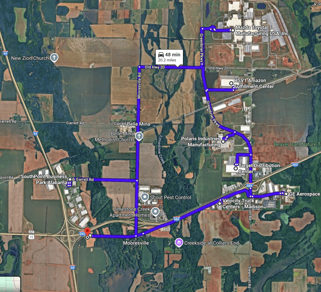 This is the “Westmoore Landing” community, presumably name as such due to being west of the small town “Mooresville”. This area was annexed by Huntsville only very recently and borders Decatur. In fact, its more than 3 times closer to downtown Decatur than downtown Huntsville, being 8km (5 miles) to downtown Decatur and 30km (18 miles) to downtown Huntsville.