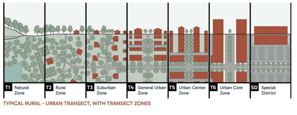 Pedestrian sheds are integral to creating vibrant, walkable communities where residents and visitors can easily access essential services and public spaces. By focusing on a compact, accessible area, these spaces promote walking as a primary mode of transportation, encouraging a healthier and more sustainable lifestyle. They foster an environment where daily needs, like shops, schools, and local services, as well as squares, greens, parks, and paseos, are all within a short, 5-minute walk (1/4 mile), reducing the dependence on cars. This design approach enhances street life, promotes local businesses, and contributes to a safer, more connected community. Prioritizing pedestrian- friendly infrastructure not only improves mobility but also creates a more enjoyable and inclusive urban experience.