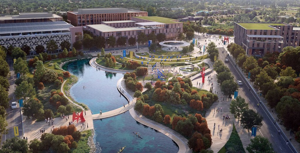 Planned for the former Executive Plaza area on Sparkman Drive in Cummings Research Park, UAH plans to transform the 58-acre parcel to a mixed-use district that creates a college-town environment.
